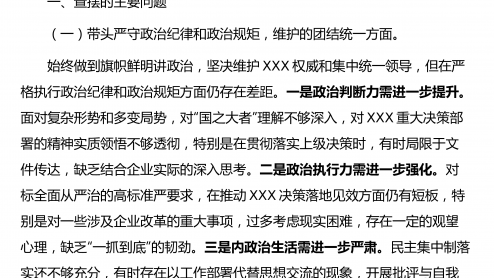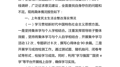 2024年度民主生活会领导班子对照检查材料(“四个带头”)